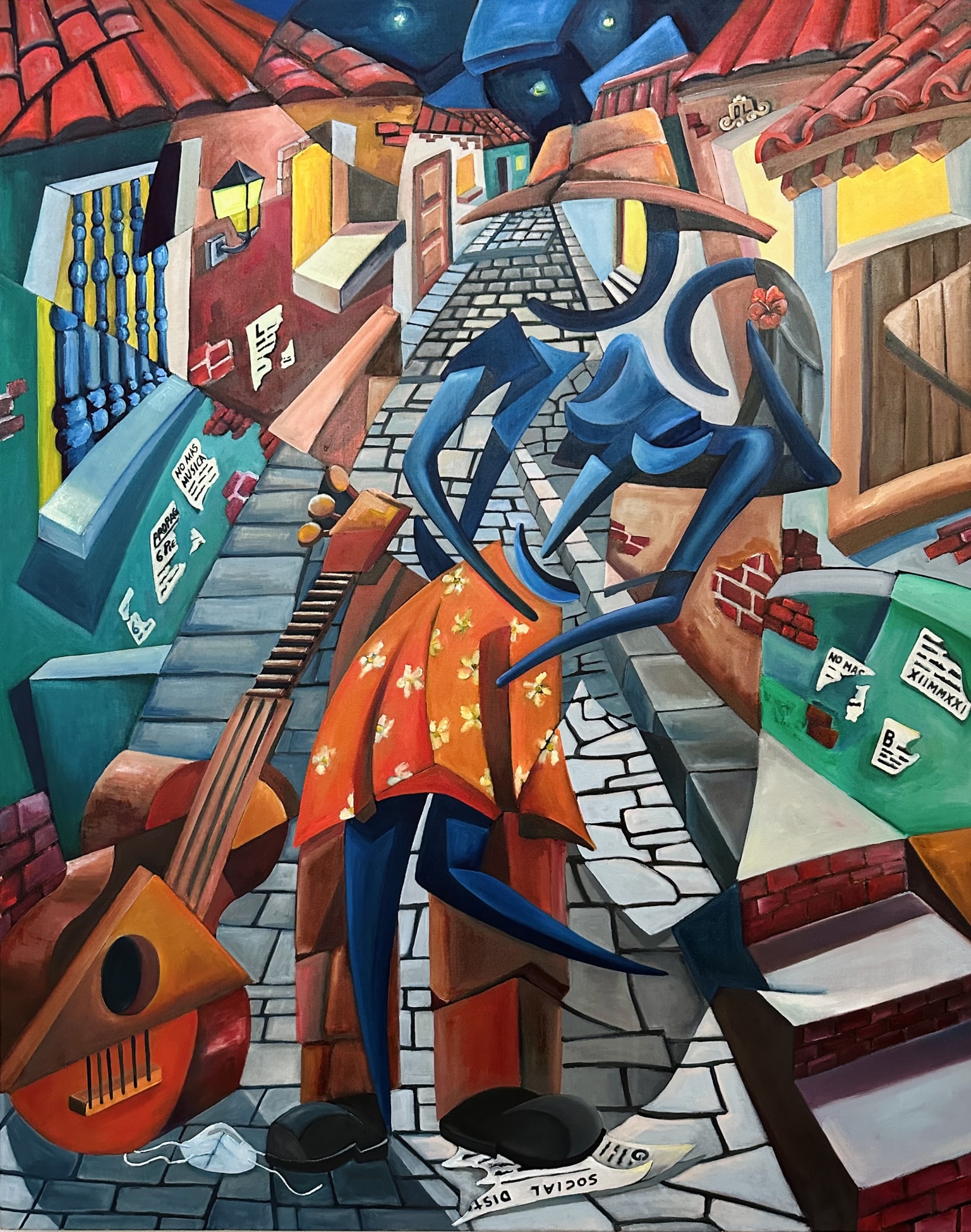 “Social Distance” 2022, Oil On Canvas, 60″ x 48″ by Derwin Leiva.