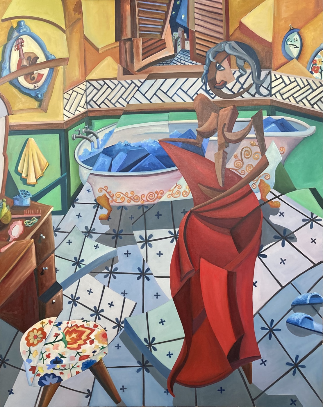 “The Bath” 2021, Oil On Canvas, 60″ x 48″ by Derwin Leiva.
