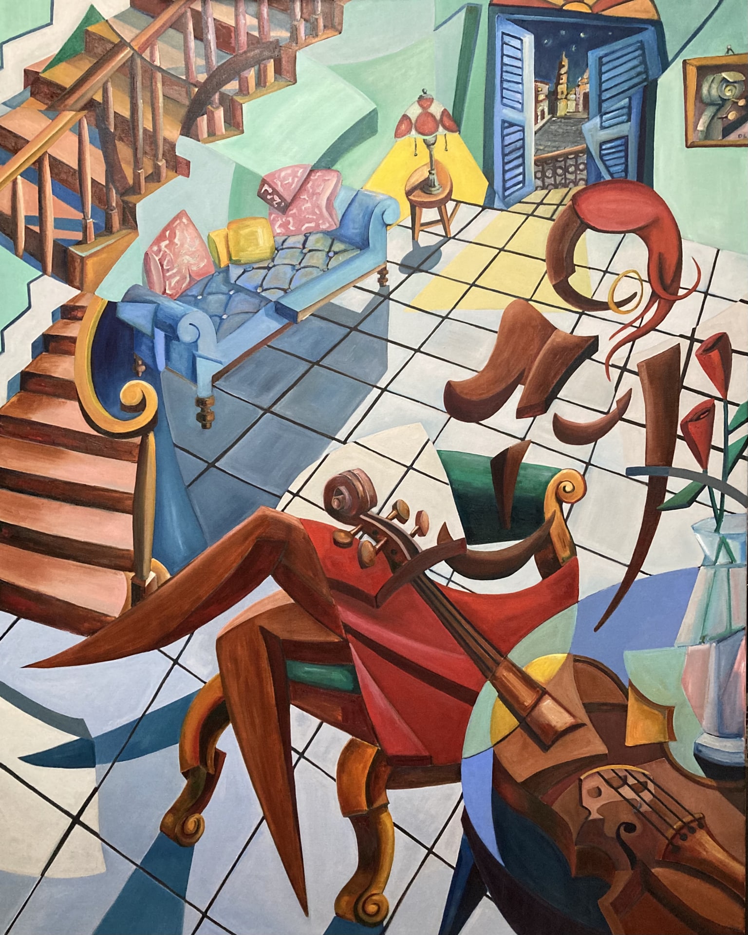 Although his work has been influenced by artists like Picasso, Boccioni, and Wifredo Lam, Cuban music has always been a constant backdrop to his work. Through rhythm and motion in his work, he mirrors the experience of freedom found in Cuban music.