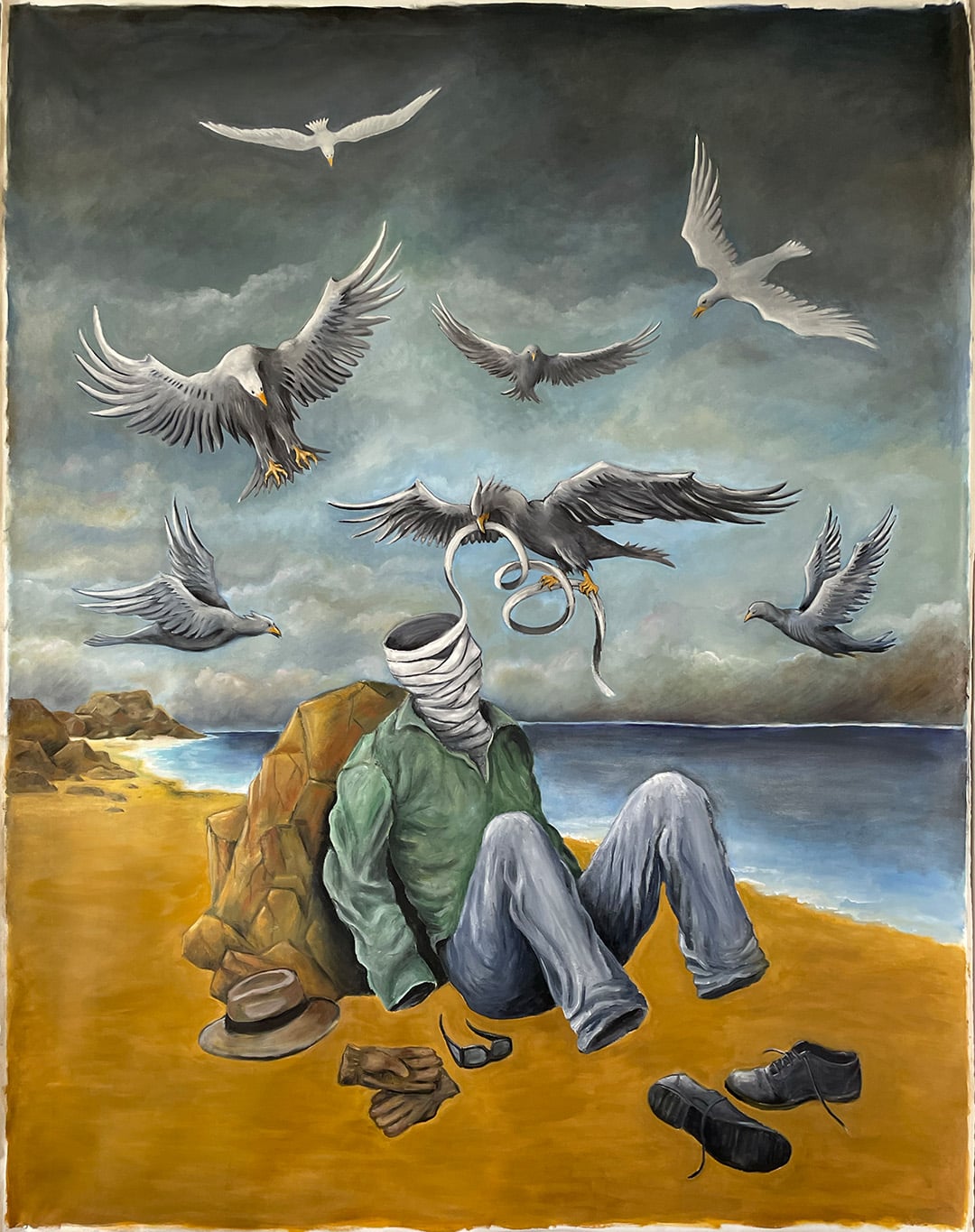 “Invisible Man Undressed by Birds of Prey” Oil on Canvas by Paul Gregoire.