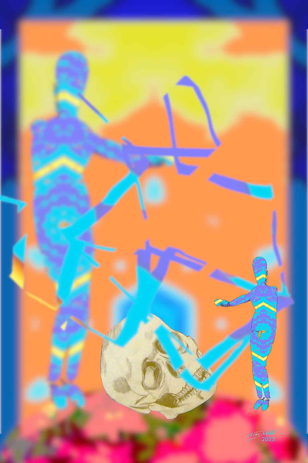 In “Para Juvenation,” Wolff’s masterful blend of digital and traditional mediums creates a composition that bursts with life and color, leaving the viewer with a sense of rejuvenation and vitality. The central figure, enveloped in an ethereal aura, stands as a testament to Wolff’s ability to capture the surreal and the mystical, drawing the viewer into a world where the boundaries between reality and fantasy blur. This piece is a vivid embodiment of the artist’s journey through decades of supernatural encounters and the subsequent reflections that have shaped her artistic narrative.